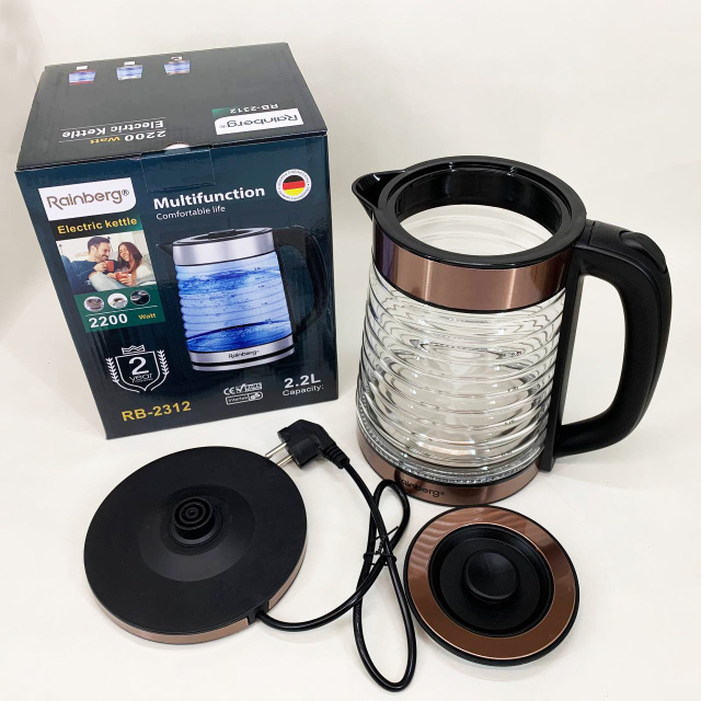 Электрочайник Rainberg RB-2312 стеклянный дисковый чайник 2.2л 2200Вт Brown, Одесса
