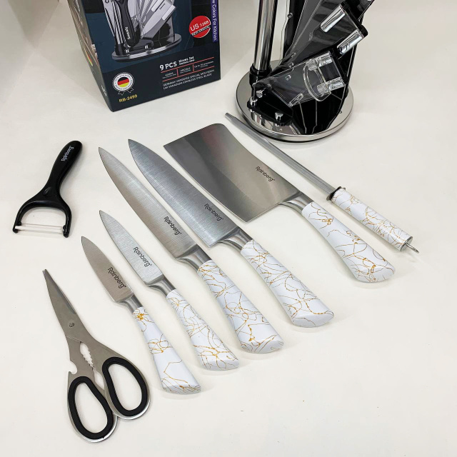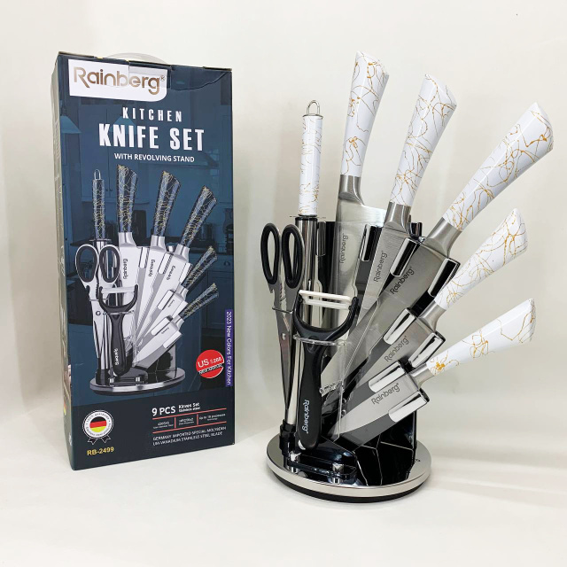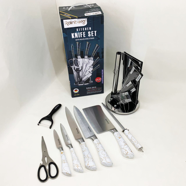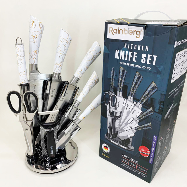 Набор кухонных ножей Rainberg RB-2499 8 предметов на вращающейся подставке White, Одесса