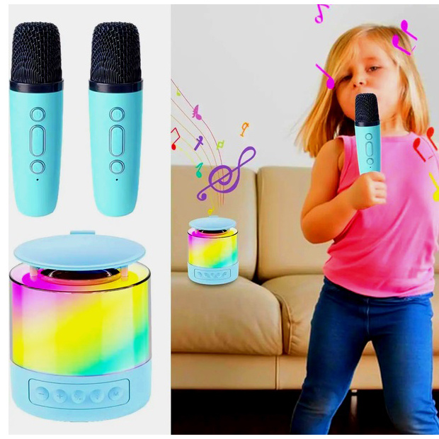 Портативная Bluetooth колонка K19 с подсветкой LED и двумя микрофонами для караоке Blue, Одесса