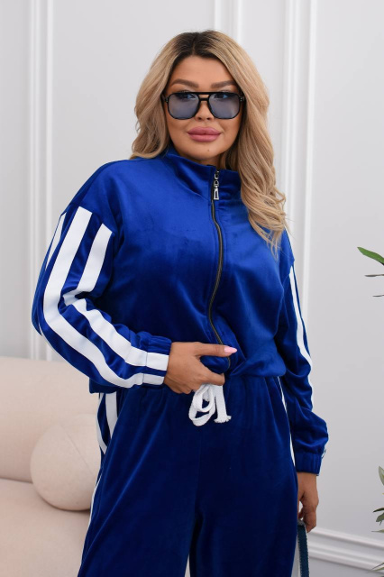 Кофта на блискавці, штанці палаццо висока посадка, пояс на резинці з робочим шнурком в поясі. Лампаси м,які х/б, тканину не стягують, дуже зручний, практичний костюм.