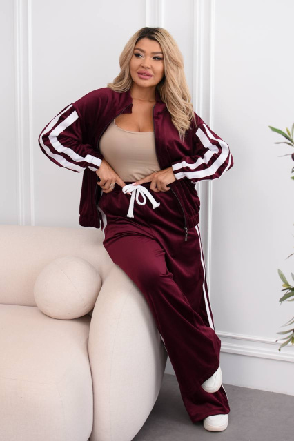 Кофта на блискавці, штанці палаццо висока посадка, пояс на резинці з робочим шнурком в поясі. Лампаси м,які х/б, тканину не стягують, дуже зручний, практичний костюм.