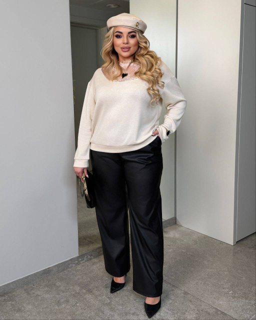 Кофта. Прогулянкова кофта, з довгими рукавами, спереду виріз оброблений ніжним французьким мереживом. Тканина двостороння ангора дрібна в'язка. Тканина дуже м'яка і приємна до тіла, тканина злегка тягнеться.