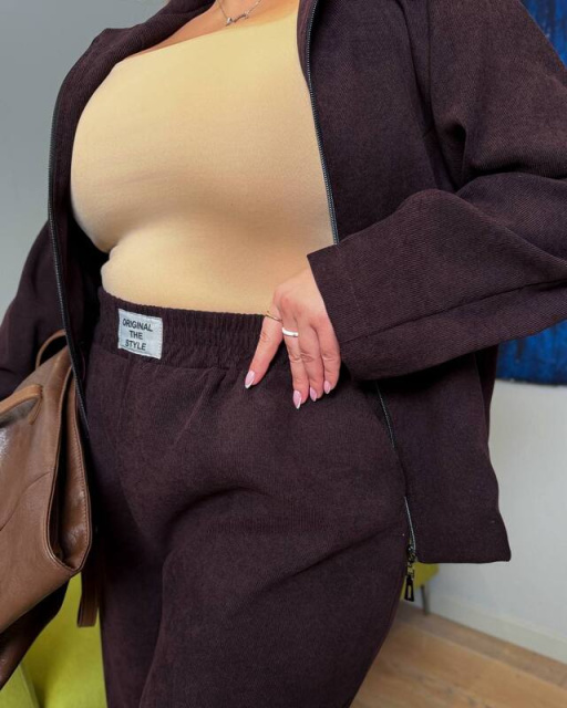 54-56 Ог 120, рукав 57, довжина кофтинки 61, бедра 126, довжина штанів 108, талія тягнеться до 120