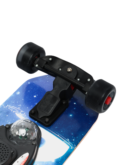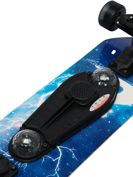 Встроенная музыкальная колонка, которая воспроизводит музыку через Bluetooth, который синхронизируется с вашим смартфоном, или через карту памяти формата Micro SD. Skateboard имеет светящуюся деку и светящиеся колеса
