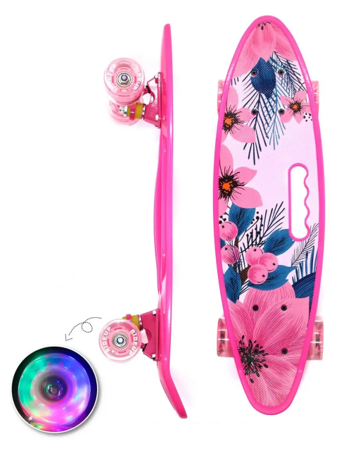 Пенни Борд Penny Cruiser с ручкой предназначен для детей с массой до 60 кг и предлагает универсальное применение как в городских условиях, так и для освоения простых трюков. Он оснащен прочной и легкой пластиковой доской с ярким принтом, обладает специальным рельефным рисунком для предотвращения скольжения ног и удобным вырезом для переноски.