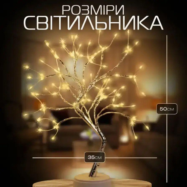 Размер светильника: 50 см высота, около 20 см ширина (зависит от того, как вы расправите веточки)