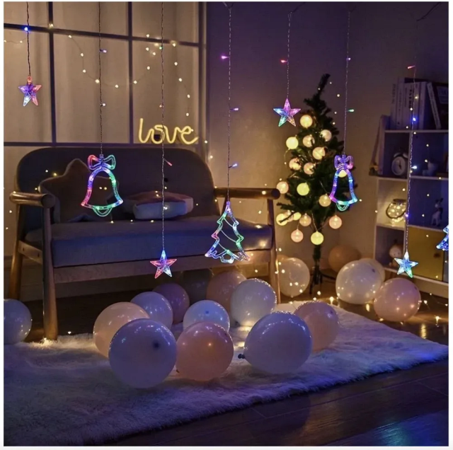 Ищете оригинальную, яркую, выразительную гирлянду? Декоративная гирлянда-штора с большими фигурками - превосходный вариант! Диоды переливаются внутри фигурок, излучая мягкий и красивый свет, создавая романтично-праздничную атмосферу. Гирлянду можно повесить как на карниз перед окном, так и на любую стену при помощи крепления для гирлянд.