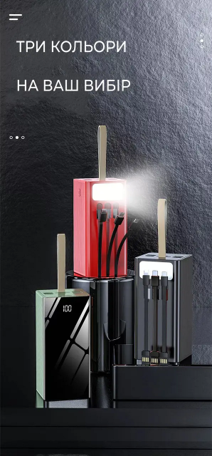 Повербанк Power Bank с емкостью 40000 mAh со встроенным кабелем и фонариком, Одеса