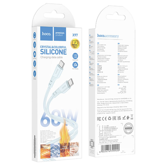 Дата кабель Hoco X97 Crystal color Type-C to Type-C 60W (1m), Одеса