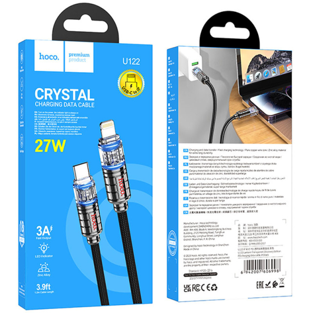 Дата кабель Hoco U122 Lantern Transparent Discovery Edition Type-C to Lightning (1.2m), Одеса