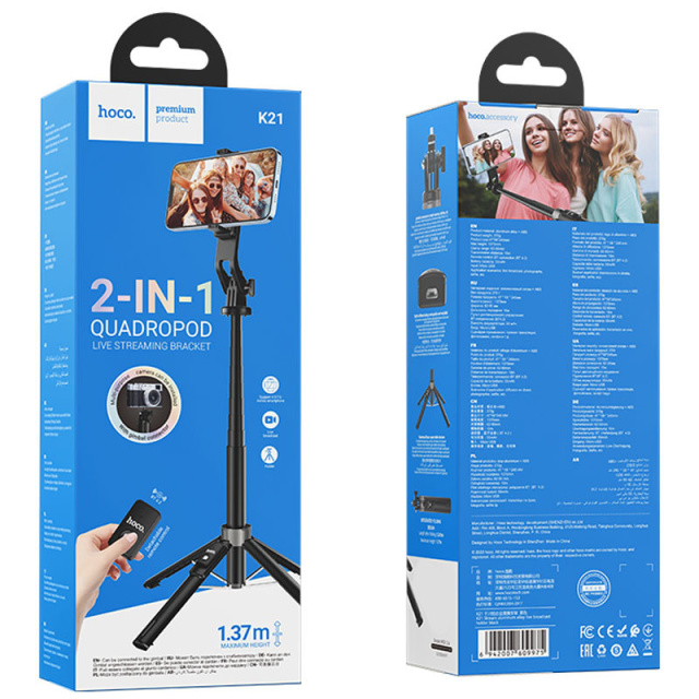 Монопод для селфі Hoco K21 з триногами + знімний BT пульт, Одеса