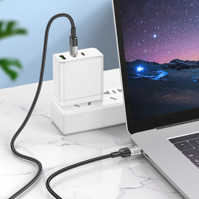 Дата кабель Hoco U129 Spirit Transparent Type-C to Type-C 60W (1.2m), Одеса