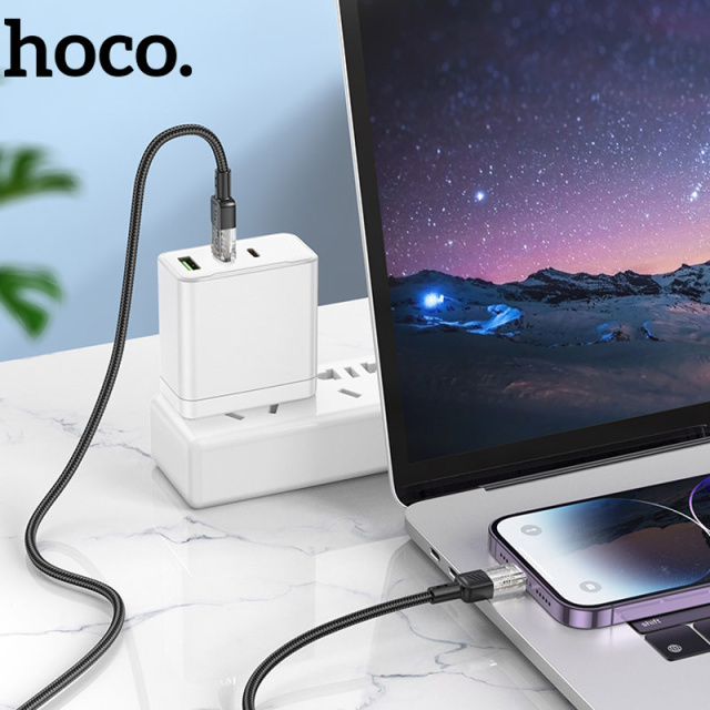 Дата кабель Hoco U129 Spirit Transparent Type-C to Lightning 27W (1.2m), Одеса