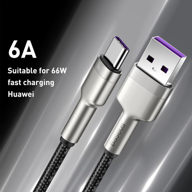 Дата кабель Baseus Cafule Metal Data USB to Type-C 66W (0.25m) (CAKF00000), Одеса