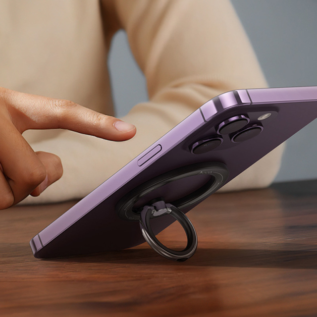 З діаметром 60 мм та товщиною всього 5 мм, цей тримач важить лише 33 г, що робить його легким та компактним. Він сумісний з Apple 12 та вище, а також може використовуватися з 99% мобільних телефонів завдяки магнітному диску. TPE кільце приємне на дотик і обертається на 360 градусів, що забезпечує максимальну гнучкість у використанні.