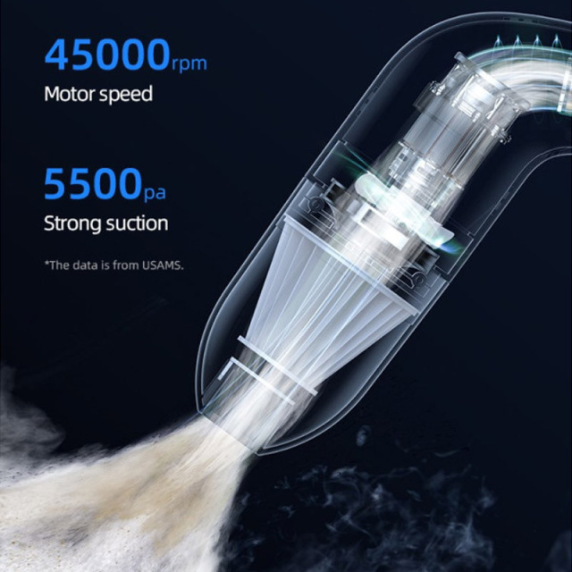 Пилосос Usams US-ZB253 Mini LEJ Series виготовлений з міцних матеріалів ABS та PC, що забезпечує його довговічність та надійність. З вагою всього близько 360 г та розмірами 218.8*156*60 мм, він легко поміщається в руці та не займає багато місця при зберіганні. Потужність пристрою становить 65 Вт, а швидкість обертання досягає 45000 об/хв, що дозволяє ефективно справлятися з пилом та дрібним сміттям.