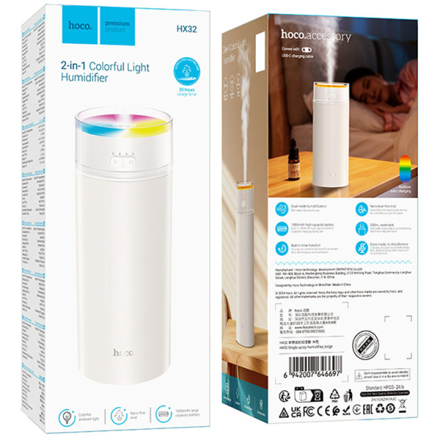 Зволожувач повітря Hoco HX32 Single — це ідеальне рішення для створення комфортного мікроклімату в домі чи офісі. Цей стильний і функціональний прилад від бренду Hoco стане незамінним помічником у боротьбі з сухим повітрям, забезпечуючи оптимальну вологість у приміщенні.
