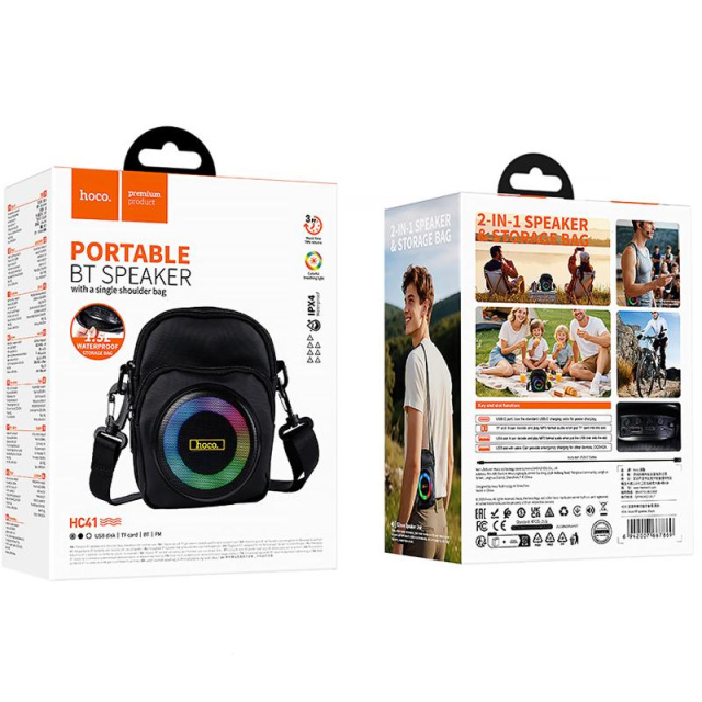 Сумка Hoco HC41 Wave Bass виготовлена з міцних матеріалів, таких як поліестер плівка, нейлон та ABS, що забезпечує довговічність та надійність. Вона має компактні розміри 140 * 80 * 180 мм і важить всього 450 г, що робить її зручною для повсякденного використання.