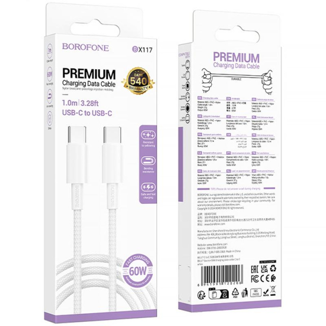 Дата кабель Borofone BX117 Source Type-C to Type-C 60W (1m) — це ідеальне рішення