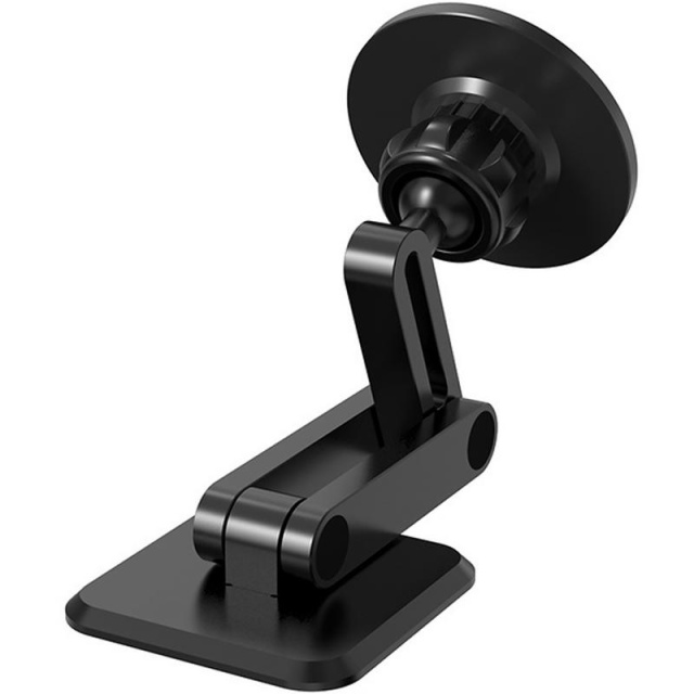 Тримач виконаний з металу та ABS-пластику, що гарантує довговічність та стильний вигляд. Він кріпиться на клеєвій основі та підтримує обертання на 360°, що дозволяє легко регулювати положення пристрою. Магнітне кріплення забезпечує надійну фіксацію, а сумісність з технологією MagSafe дозволяє використовувати його для зарядки та інших аксесуарів.