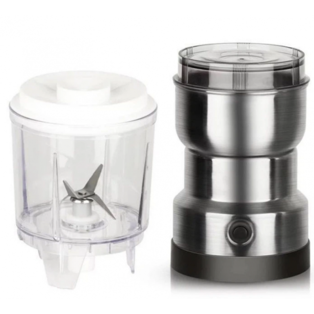 процесс перемалывания. Преимущества:Универсальность;Качественные материалы;Функциональность;Просто в использовании;Надежность и долговечность. Характеристики:Тип: кофемолка / измельчитель;Материал корпуса: нержавеющая сталь/ пластик;Материал чаши: нержавеющая сталь;Материал ножей: нержавеющая сталь;Мощность: 300 Вт;Объем чаши (кофемолки): 85 грамм;Объем чаши (блендера): 350 мл;Питание: 220-240В, 50 ~ 60 Гц;Размеры: 39.5 х 10.5 см. Комплектация:Измельчитель для кухни Domotec MS-7126;