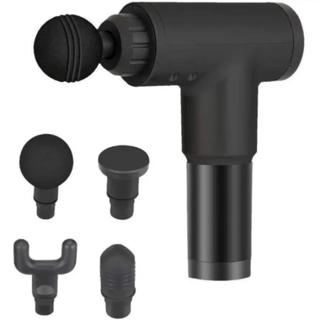 Массажер Аккумуляторный для тела мышечный портативный ручной 4 насадки Fascial Gun GB-820 Черный, Одеса