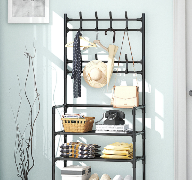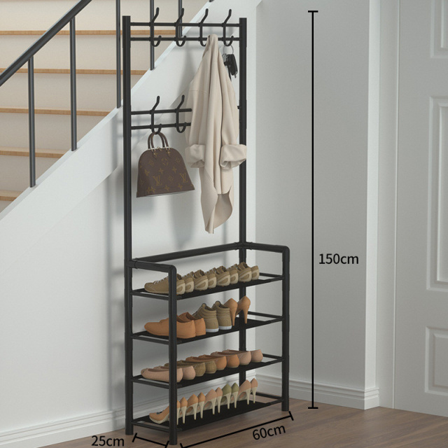 Полочка с вешаком для прихожей 25х60х150, Органайзер для обуви и одежды с 4 полками, Черного цвета, Одеса