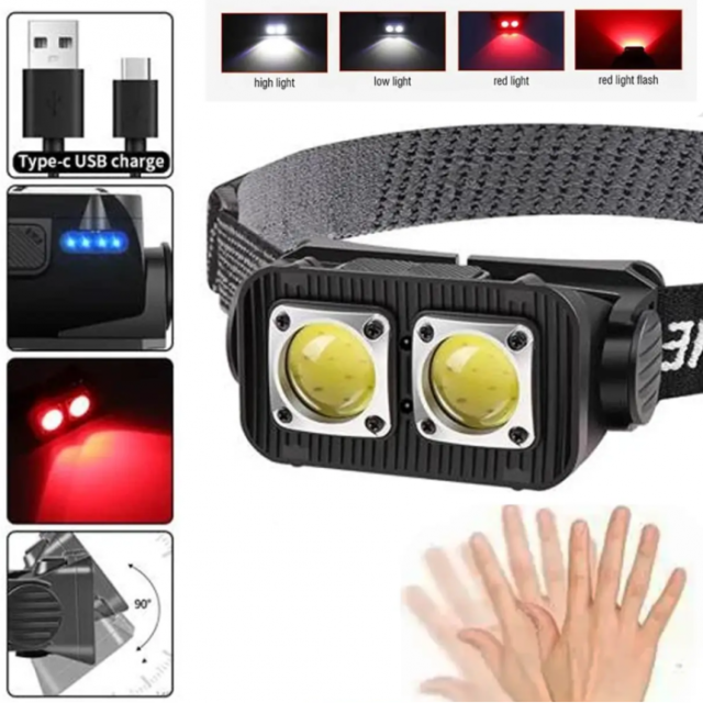 Модель отлично подходит для использования на открытой местности, в лесу и горах, а также может применяться в походах в качестве компактного кемпингового источника света.Питание осуществляется от съёмного аккумулятора 18650, который заряжается через разъем USB Type C от любого устройства с USB-выходом (сетевое зарядное устройство, компьютер, ноутбук, автомагнитола). Аккумуляторное питание избавляет от необходимости регулярной замены батареек. Во избежание повреждения устройства не рекомендуется использовать фонарь во время зарядки.Корпус выполнен из прочного ударостойкого пластика с влагозащитным и пылеотталкивающим покрытием. Встроенный сенсорный датчик движения включает освещение только при необходимости, снижая расход энергии и увеличивая время автономной работы. Фонарь автоматически реагирует на движение руки в зоне действия датчика.Характеристики· Тип фонаря: налобный· Тип лампы: светодиодная· Тип диодов: XPE (белый / красный)· Количество режимов работы: 4· Световой поток: 200 лм· Дальность светового луча: до 550 м· Аккумулятор: встроенный Li-Ion· Время автономной работы: до 4 часов· Тип зарядки: USB – Type· Степень защиты: IPX4· Датчик движения: сенсорныйКомплектация: