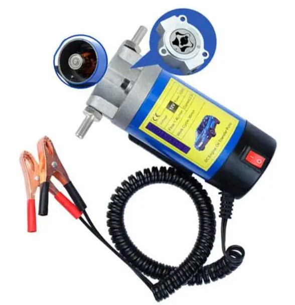 Насос обладнаний витовим кабелем із крокодилами для живлення від акумуляторної батареї автомобіля. А завдяки потужному двигуну здатний перекачувати до 4 літрів за хвилину; залежно від в'язкості та температури оливи.