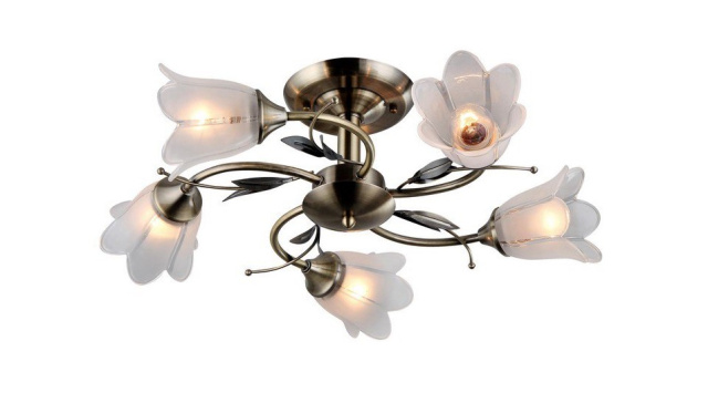 Высота (мм): 300 мм; Ширина (мм): 550 мм; Тип цоколя: Е27; Количество источников света: 5; Максимальная мощность люстры (Вт): 200; Цвет основы: Бронза; Материал основы: Металл; Материал патрона: Термопластик; Материал плафона: Стекло; Цвет плафона: Белый; Стиль: Классический; Площадь помещения: от 20 до 30 кв.м; Высота потолка: до 250 см; Гарантия: 24 месяца; Тип монтажа: Монтажная планка;