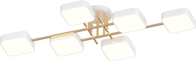 Высота (мм): 150 мм; Ширина (мм): 1060 мм; Количество источников света: 6; Максимальная мощность люстры (Вт): 108; Цвет основы: Белый+золото; Тип крепления на потолок: Монтажная планка; Материал основы: Металл+акрил; Цвет свечения : Теплый, белый, холодный; Цветовая температура: 3000-6000K; Световой поток (Лм): 8100; Стиль: Модерн; Площадь помещения: от 10 до 20 кв.м; Высота потолка: до 250 см; Тип используемой лампы: Светодиодный модуль;