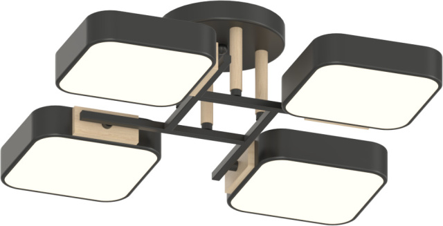 Светодиодная потолочная люстра SVLIGHT LED XI3352-4 BK+WOOD 72W, Одеса