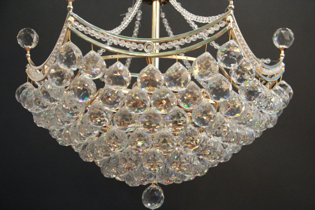 Высота (мм): 870; Ширина (мм): 520; Тип цоколя: Е27; Количество источников света: 9; Максимальная мощность люстры (Вт): 540; Вес (г): 16500; Цвет основы: Золото (гальваника); Тип крепления на потолок: Крючок; Материал основы: Металл; Материал патрона: Термопластик; Длина цепи (мм): 200; Цвет хрусталя : Белый; Количество в ящике (шт.): 1; Стиль: Классика; Площадь помещения: от 20 до 30 кв.м; Высота потолка: от 320 см до 400 см;