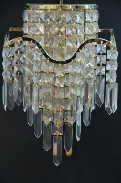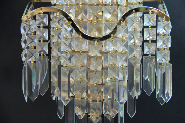 Высота (мм): 350; Ширина (мм): 230; Тип цоколя: Е14; Количество источников света: 3; Максимальная мощность люстры (Вт): 120; Вес (г): 1800; Цвет основы: Золото (гальваника); Тип крепления на потолок: Планка; Материал основы: Металл; Материал патрона: Керамика; Тип выключателя: Металлическая цепочка; Цвет хрусталя : Белый; Стиль: Классика;