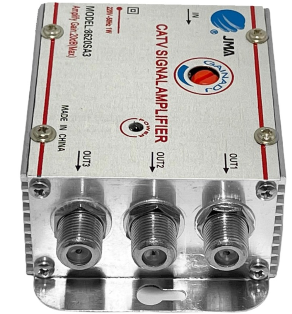 Абонентский усилитель на 3 выхода 8620SA3 Підсилювач домовик JMA 8620SA3 (IN OUT 1 3 20dB) для ефірного телебачення Живлення 220В Частотний діапазон