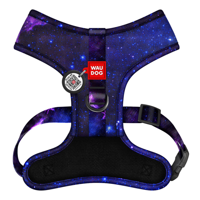 Шлея для собак дихаюча WAUDOG Mesh с QR адресником, малюнок «NASA21», М, A 35 см, В 42-60 см, Одеса