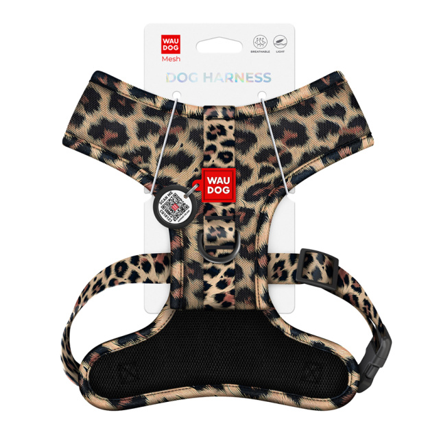 Шлея для собак дихаюча WAUDOG Mesh с QR адресником, малюнок «Леопард», XS, А 24 см, В 30-36 см, Одеса