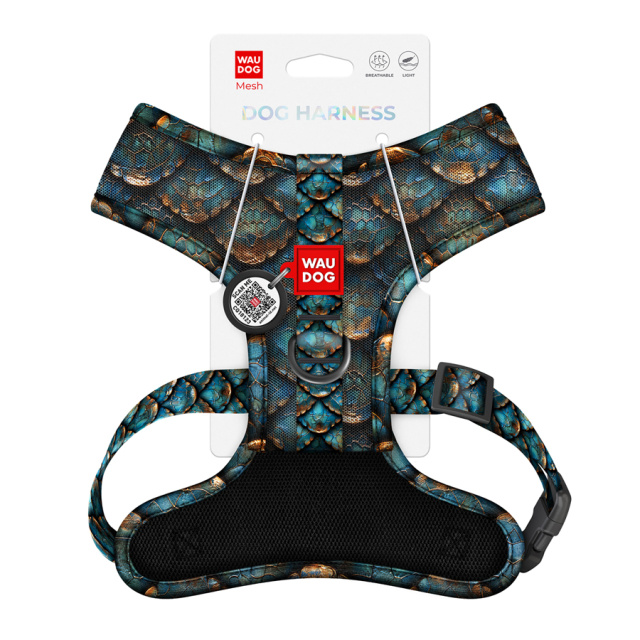 Шлея для собак дихаюча WAUDOG Mesh с QR адресником, малюнок «Луска», XS, А 24 см, В 30-36 см, Одеса