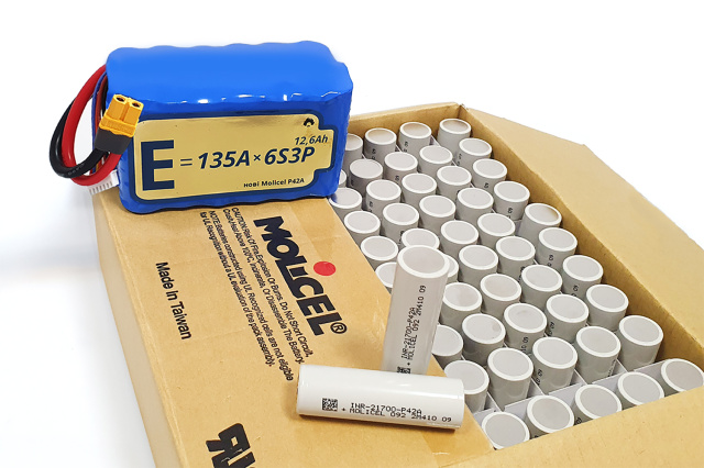 Аккумуляторная батарея для дрона 6S3P Energy Life 12600 мАч 135 А - вертикальная аккумуляторная сборка из оригинальных новых Li-Ion элементов Moliсel 21700-P42A, провода 10 AWG, коннектор Аmass XT60-Female. Силовая батарея для дрона собирается из оригинальных и исключительно новых аккумуляторов 21700 Моliсel P42A 4000-4200 мАч, 3.6 В, пиковый ток - 45 А, длительный.