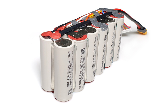 Аккумуляторная батарея для дрона 6S2P Energy Life 8400мАч 90A - вертикальная аккумуляторная сборка из оригинальных новых Li-Ion элементов Moliсel 21700-P42A, провода 12 AWG, коннектор Аmass XT60-Female. Силовая батарея для дрона собирается из оригинальных и исключительно новых аккумуляторов 21700 Моliсel P42A 4000-4200 мАч, 3.6 В, пиковый ток - 45 А, длительный.