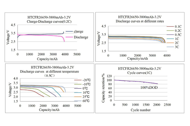 Аккумулятор JGNE HTCFR26650 - промышленный вариант литий-железо-фосфатных (LiFePO4) аккумуляторных ячеек, готовый для сборки в батареи в соответствии с поставленными задачами. Отличительной характеристикой литий-железо-фосфатных аккумуляторов является несколько более низкое номинальное напряжение в 3,2В (в сравнении с 3,6 -3,7 В распростаненного литий-иона), что позволяет с минимальными переделками устанавливать эти аккумуляторы в системы изначально предназначенные для свинцовых батарей (из дополнительного оборудования зачастую нужна только плата защиты и балансировки). Данные аккумуляторные ячейки имеют формфактор 26650, что позволяет гибко набирать любую конфигурацию батареи, при этом экономно расходовать пространство выделенного под аккумулятор отсека. Высокая токоотдача элементов позволяет применять их в нагруженных системах, таких как электротранспорт, радиооборудование, мощные системы резервирования питания и прочие, где нужно иметь высокую перегрузочную способность.