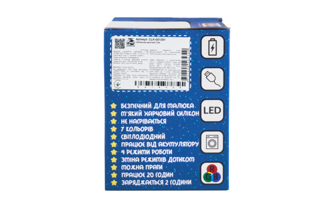 Силиконовый деский ночничок имеет в себе 4 режима работы и 7 различных цветов свечения. Можно выбрать как успокаивающий тёплый свет, который помогает ребенку уснуть, так и заставить его переливаться различными цветами, или же пульсировать каким-то одним выбранным светом играя с ним.