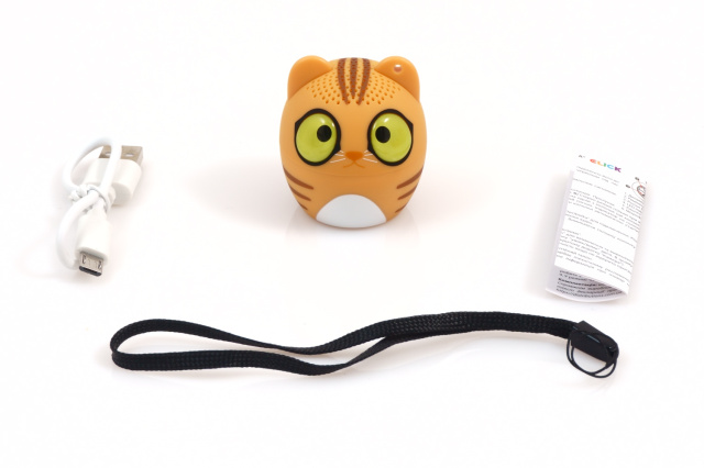 Маленькие портативные детские BlueTooth-колонки Click - милые зверушки, радующие любимой музыкой. Где угодно и когда угодно! Портативная колоночка на удивление компактная, настолько, что её можно спутать с брелком для ключей. Но при этом она способна выдавать громкий и чистый звук. Просто возьми милого котёнка с собой в рюкзак, на руль велосипеда, просто зацепив на одежду или повесив на ремешке на запястье. Заявленной мощности в 3Вт хватит как для прослушивания в помещении, занимаясь домашними делами, так и на улице в шумной компании. Для желающих окунуться в музыку с головой берём сразу две колонки Click, включаем, на одной нажимаем дважды кнопку включения и ... получаем удивительный стереозвук!