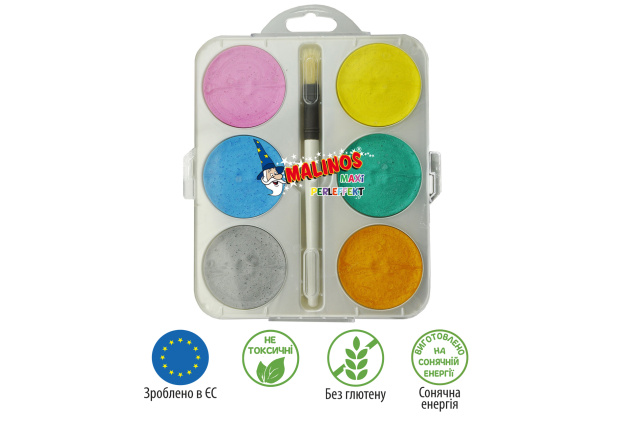Акварельные краски перламутровые MALINOS Maxi Perleffekt 6 цветов, Одеса