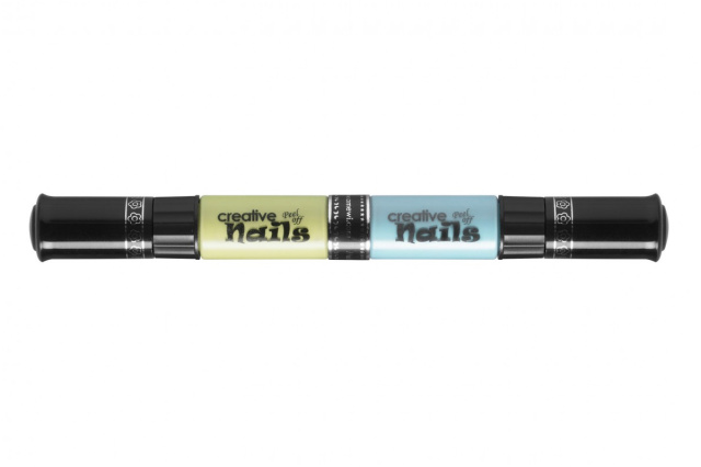 Для создания креативного маникюра выполните следующие шаги: открутите колпачок - в Ваших руках окажется кисть для нанесения лака; снимите колпачок - у Вас появляется карандаш для декорирования и нанесения тонкого, устойчивого, качественного контура, цвет которого не меняется под воздействием света. Любой из цветов может быть нанесен как кистью, так и карандашом. Два разноцветных стика, соединены вместе, поэтому удобно ложатся в руку и позволяют наносить узор как карандашом. Лак быстро высыхает после нанесения. Прочное покрытие устойчиво к сколам и царапинам, не смывается холодной водой, но хорошо смывается тёплой водой с мылом или можно снять как пленку.