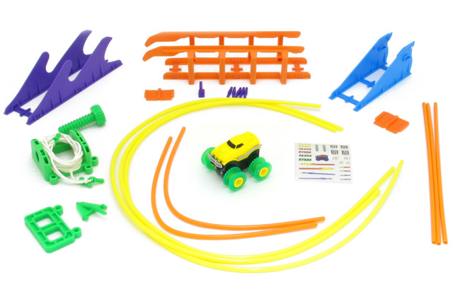 Машинка изготовлена из крепкого пластикового корпуса, не боящегося падений, и резиновых колёс со специальной ребристой формой и ложбинкой. Благодаря этим колёсам Trix Trux может похвастаться проходимостью настоящего вездехода, при чём как на земле, так и в воздухе. В этом можно легко убедиться, запустив машинку по канатной дороге, которая есть в комплекте. Кроме канатной дороги, трассу также можно усложнить трамплином, лестницей, "волной" и другими элементами для акробатических трюков. Испытательным полигоном может стать любая поверхность в доме.