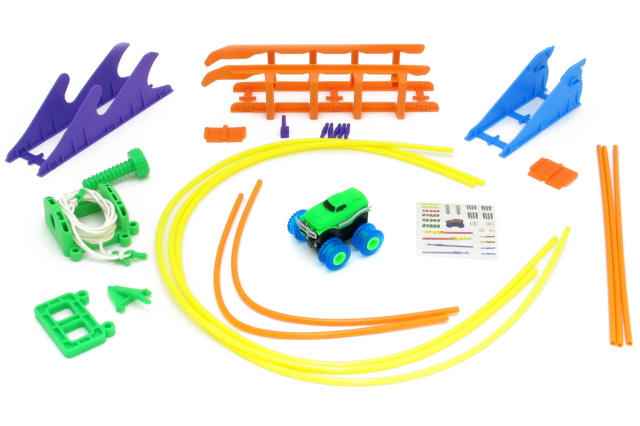 Машинка изготовлена из крепкого пластикового корпуса, не боящегося падений, и резиновых колёс со специальной ребристой формой и ложбинкой. Благодаря этим колёсам Trix Trux может похвастаться проходимостью настоящего вездехода, при чём как на земле, так и в воздухе. В этом можно легко убедиться, запустив машинку по канатной дороге, которая есть в комплекте. Кроме канатной дороги, трассу также можно усложнить трамплином, лестницей, "волной" и другими элементами для акробатических трюков. Испытательным полигоном может стать любая поверхность в доме.