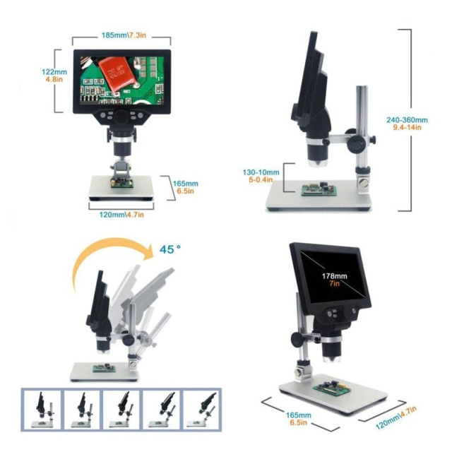 Цифровий електронний мікроскоп для пайки та досліджень з великим 7 "екраном
