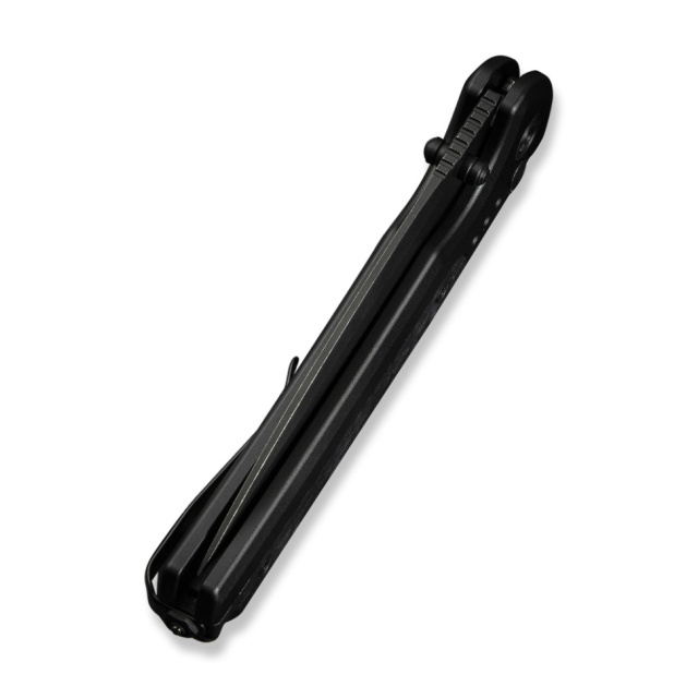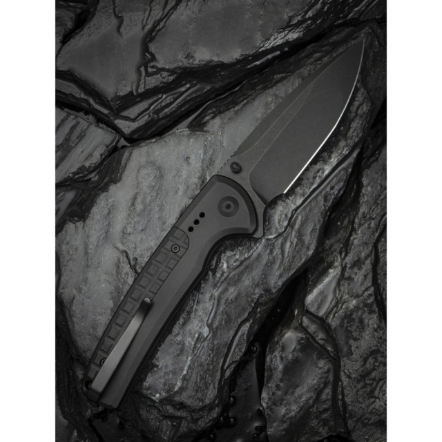 - Алюмінієве руківʼя зі вставками FRN. Алюміній знижує загальну вагу ножа до 104.7 г і відрізняється несприйнятливістю до окиснення та зношування. Вставки з нековзного термопластика FRN додають хвату надійності, особливо під час утримання вологою долонею або рукою в рукавичці.