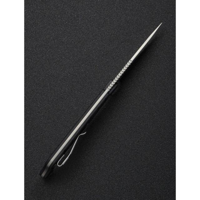 У хвості руківʼя закріплено кліпсу з нержавіючої сталі, орієнтовану на Tip-Down носіння. Затискач забезпечує міцну фіксацію інструмента в кишені або на спорядженні, не виступаючи за межі габаритів. Положення кліпси можна міняти під зручну руку — встановлювати з правого або лівого боку конструкції.
